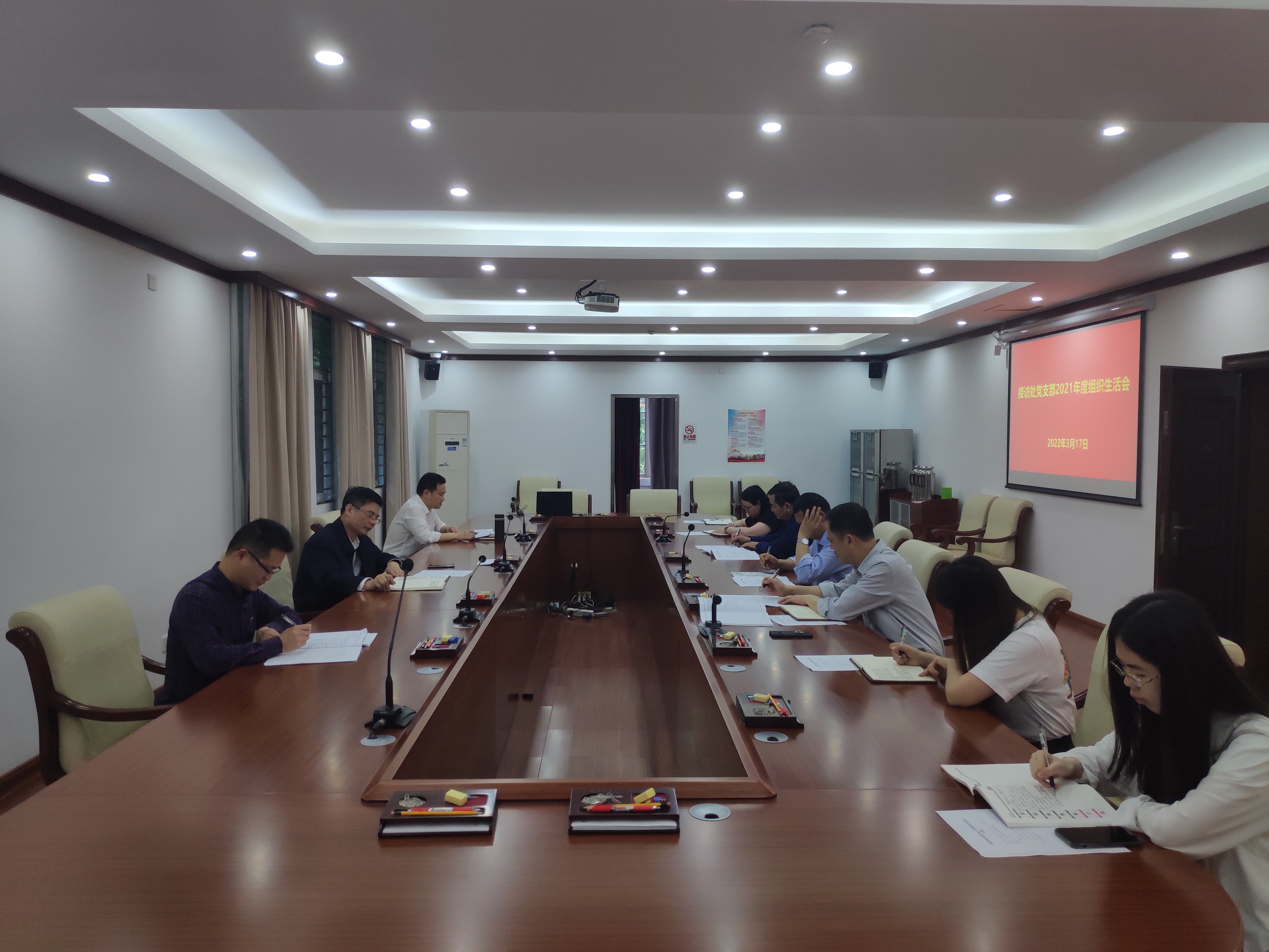 3月17日下午,接访处党支部召开2021年度组织生活会。黄伟勤副局长以普通党员身份参加。支部书记彭大胜全面总结了2021年支部工作,查摆支部党建工作不足,提出了整改措施。支部党员认真严肃开展了批评与自我批评。