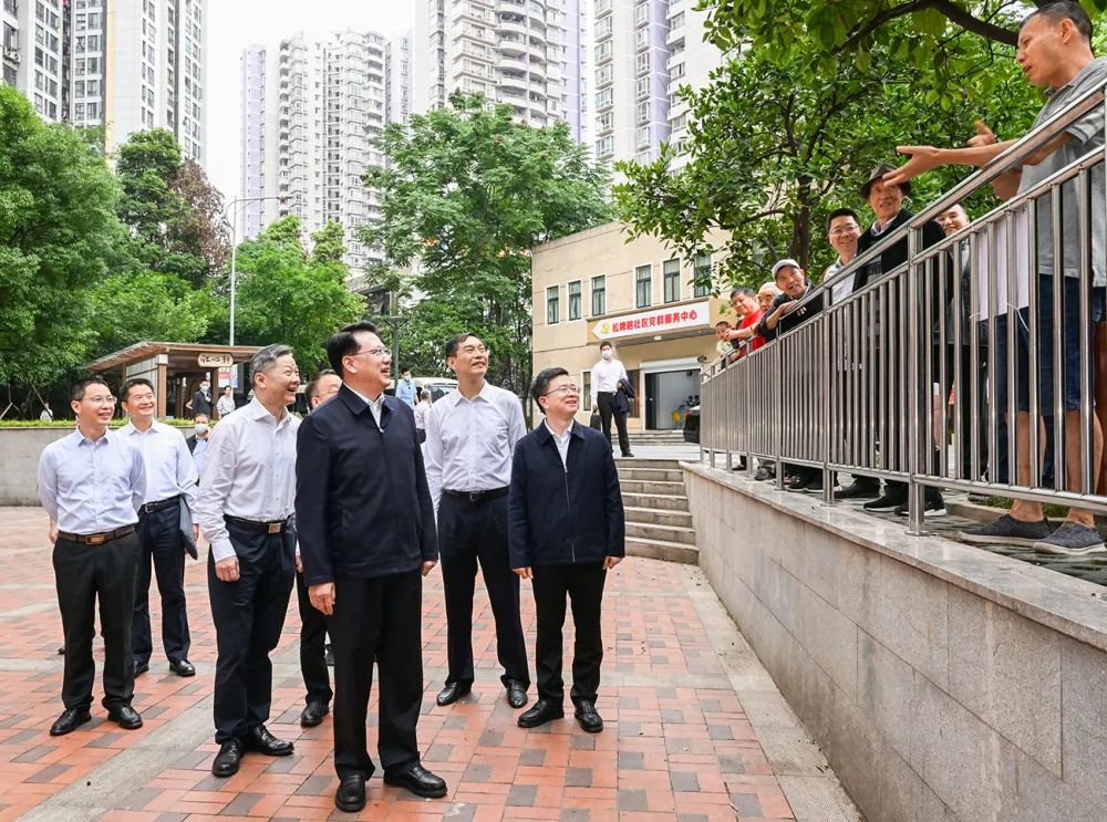 在渝北区松牌路社区,袁家军走进办事大厅,详细询问办理事项种类和数量,认真察看社区网格分布,同专职网格员交谈,了解日常入户、重点人员管理服务等情况。袁家军还听取了社区矛盾纠纷处置流程、化解平台运作等介绍,随机走进居民小区,同群众交流,听取大家对社区服务工作的意见建议。来到龙山街道办事处、公共法律服务工作站,袁家军了解社区基层治理、日常矛盾纠纷化解举措和工作成效。袁家军指出,要认真梳理社区和网格办事清单、服务清单,更好发挥街道综合指挥功能,提升基层治理清单化、规范化、闭环化水平,做到小事不出社区、大事不出街道。