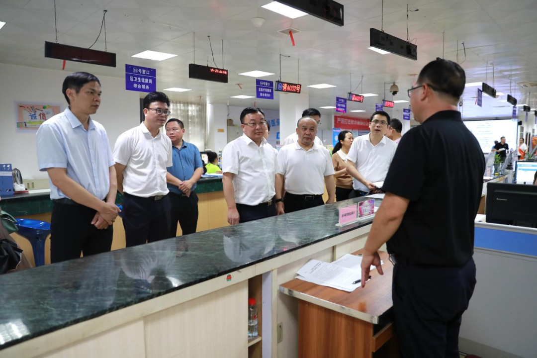 9月7日下午,唐标文一行前往河池市政务服务中心、河池市金城江区政务服务中心,来到社保、就业、“办不成事”窗口,听取政务中心负责人的总体介绍,并与窗口工作人员详细交谈,询问了解每日经办业务量、高频经办事项、办事时效、数智人社信息系统使用情况等信息。