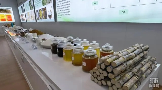 △甘蔗深加工产业链及产品展示。(总台央视记者钟锐拍摄)